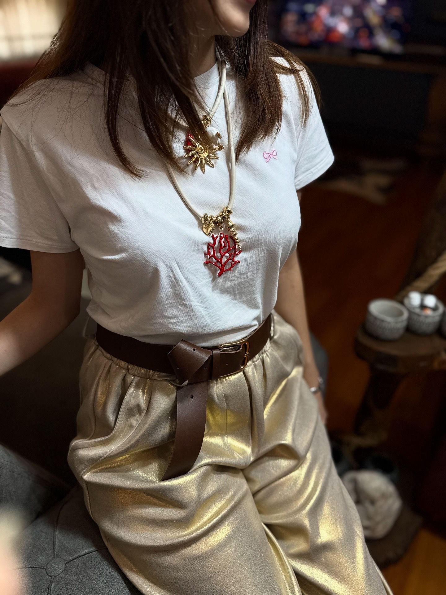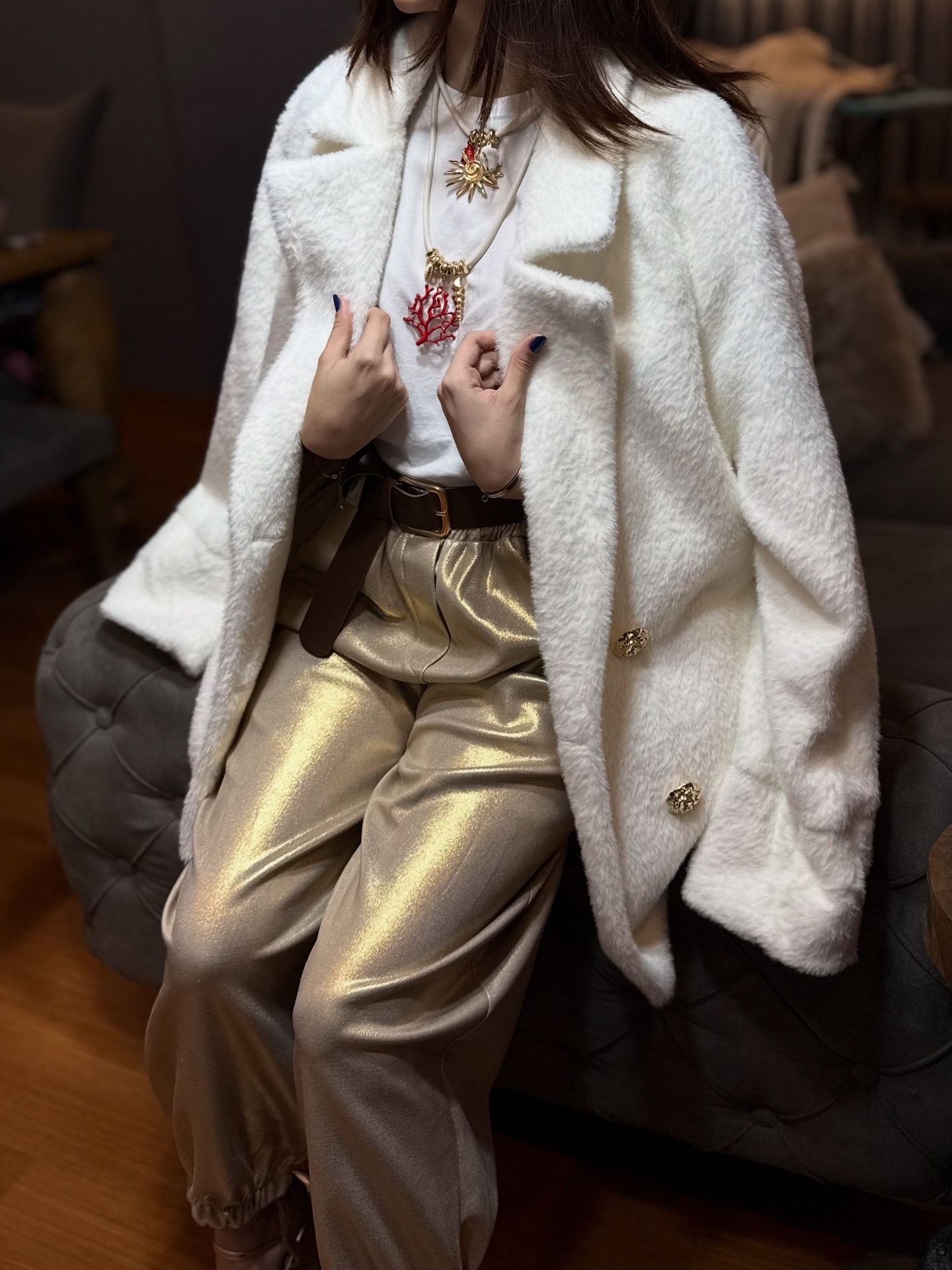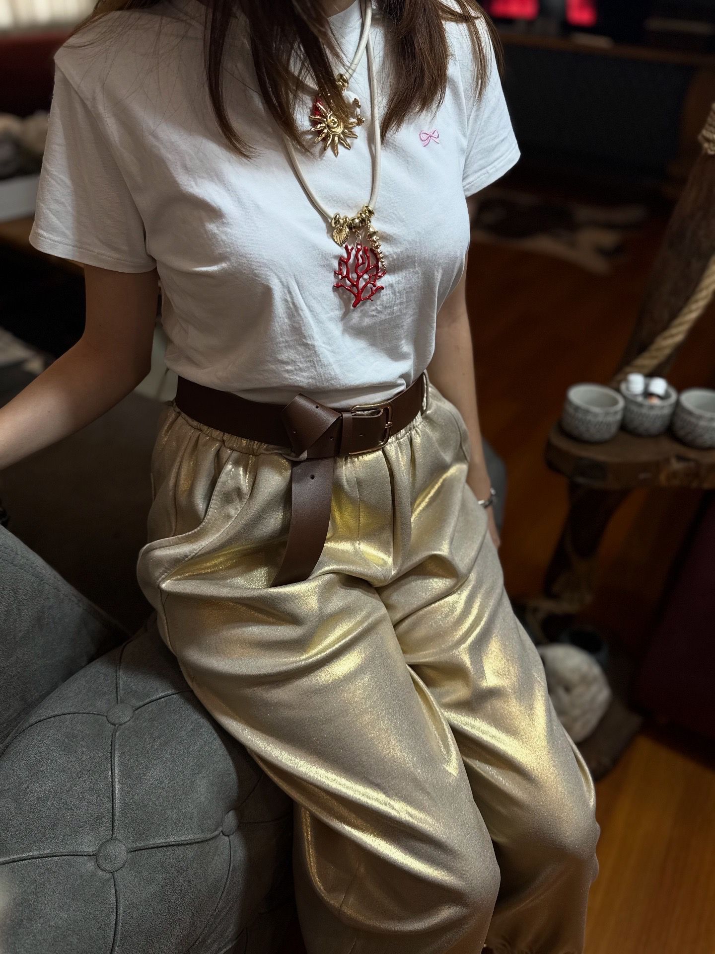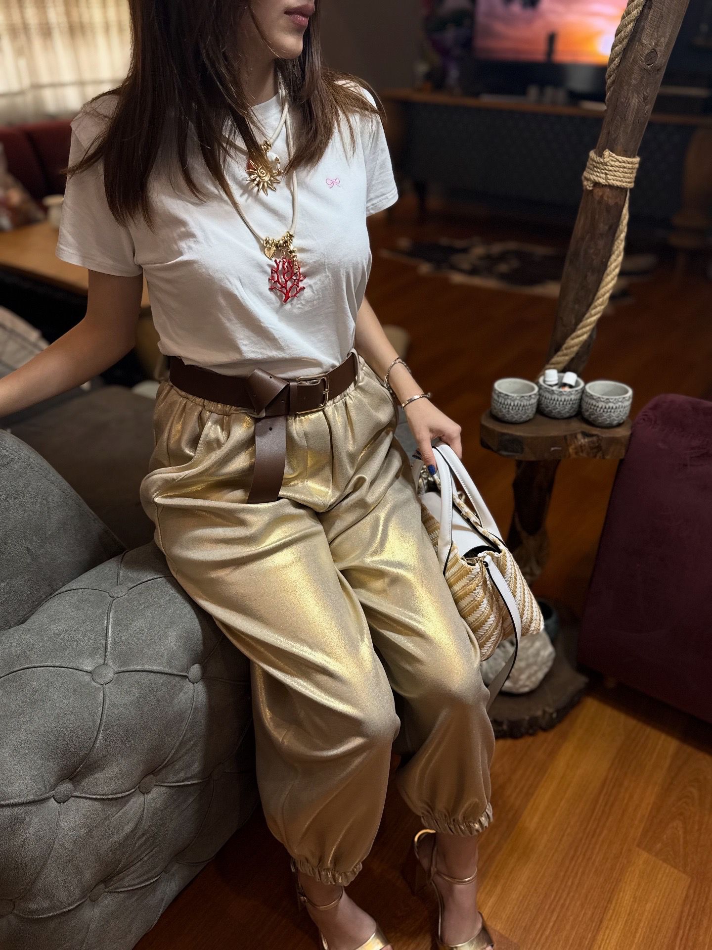 Ana Sayfa Pantolon Aurora Gold Parlak Kemer Detaylı İthal Pantolon